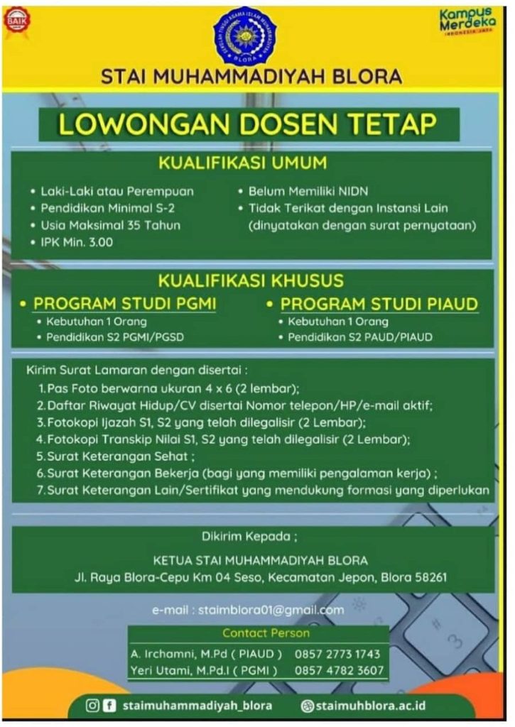 Pengumuman Rekrutmen Dosen Tetap STAI Muhammadiyah Blora